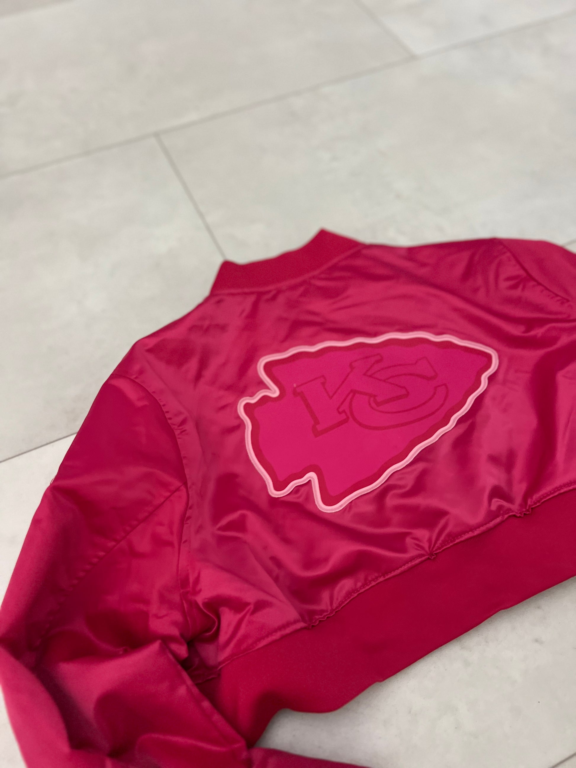 Cropped Kansas City Chiefs X Pro Standard brand satin jacket “Breast Cancer” limited Collection size Woman Large